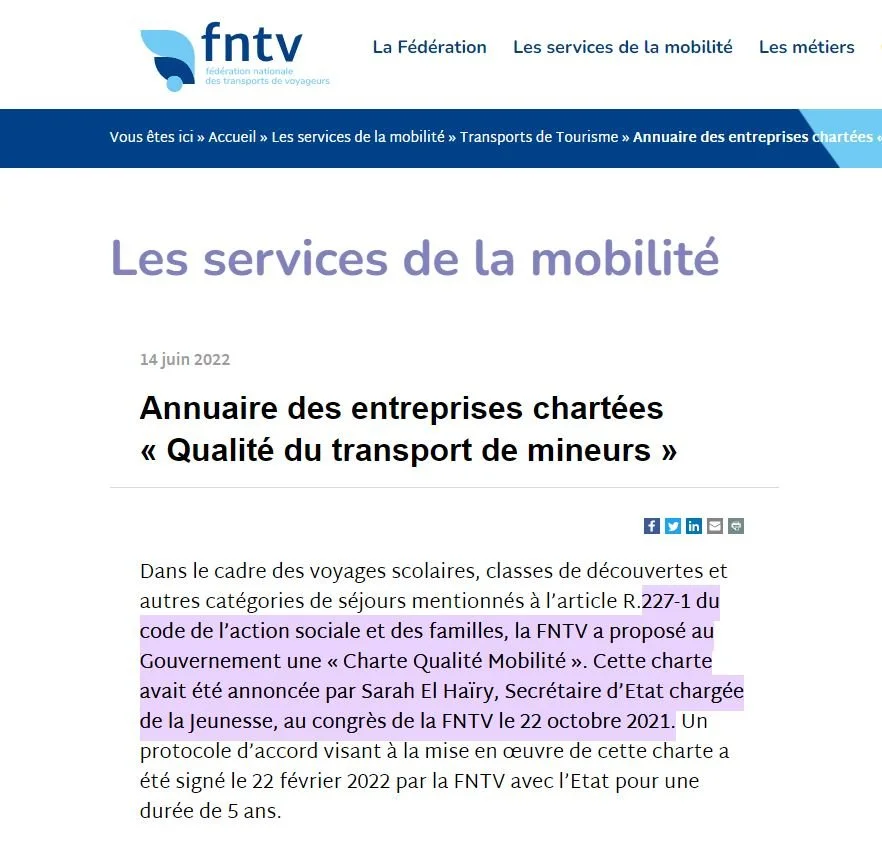 Mars 2022 : signataire de la Charte Qualité Mobilité - FNTV